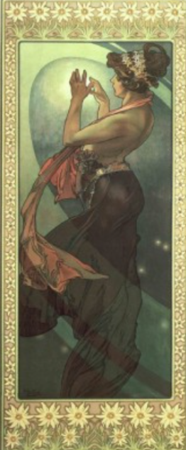 Alfons Mucha je jedním z nejvýznamnějších českých umělců a hlavních představitelů secese. Jeho tvorba je typická dekorativními liniemi, symbolikou a idealizovanými ženskými postavami, které často představují přírodní nebo kosmické jevy.
