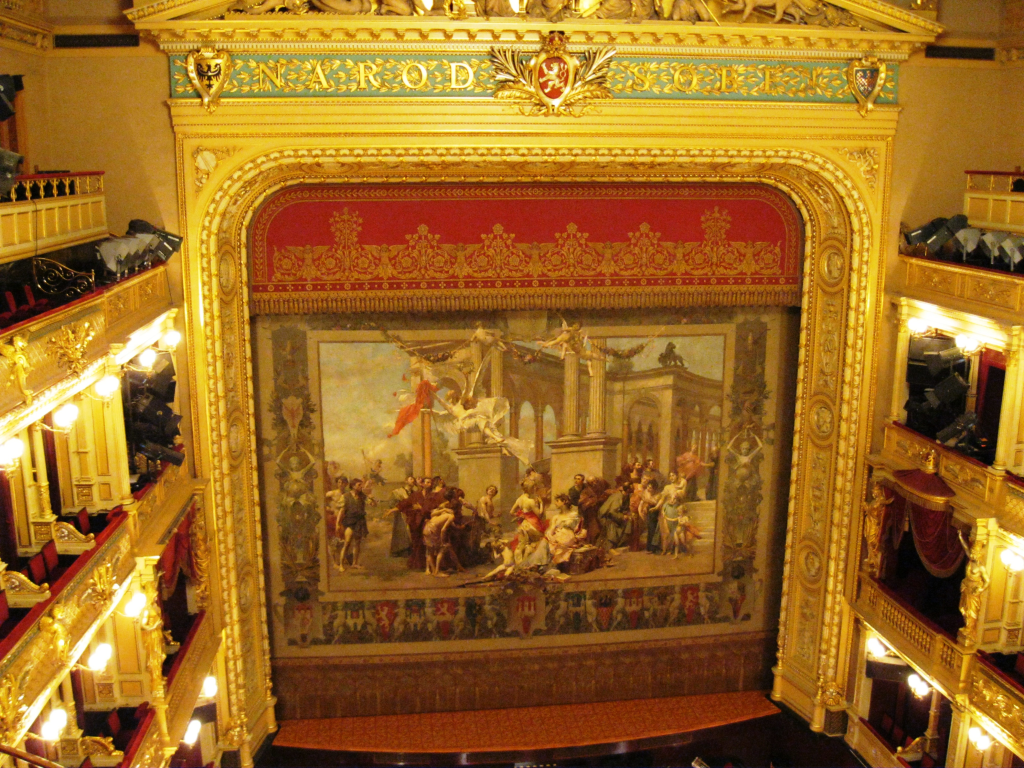 Zajímavost: Málokdo ví, že opona v hlavním sále, kterou vytvořil Vojtěch Hynais, nebyla původně určena pro Národní divadlo – umělec ji maloval pro výstavu v Paříži a až později byla přijata jako symbol ND.