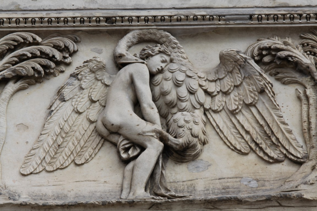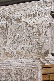 Reliéfní výzdoba – Stěny arkády jsou zdobeny velkým souborem reliéfů s mytologickou tematikou, ale i s výjevy z lovů a válek.