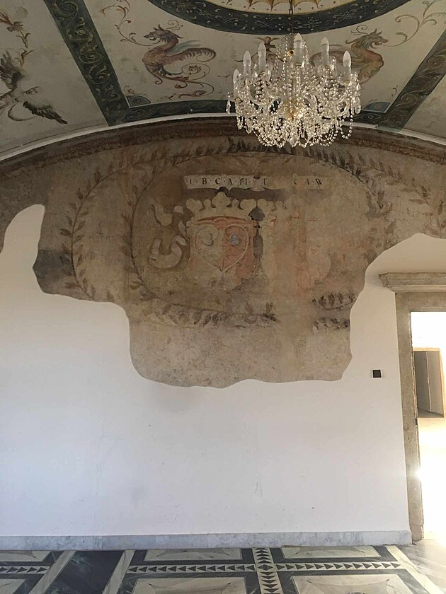 V jižním křídle paláce se nachází Velký sál s kazetovým stropem, který je unikátní svou výzdobou s výjevy Nejsvětější Trojice nebo Posledního soudu.