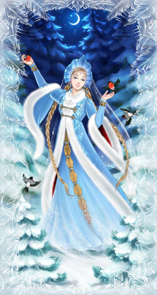 Hodným dětem nosí dárky Děda Mráz (Djed Mraz), kterého doprovází jeho vnučka Sněhurka ( Snegurochka). Tenhle Děda Mráz nenosí červenou barvu jako jsme zvyklí u Santa Clause, ale odívá se do modrého kabátu s bílými zimními vzory.
